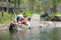 潺潺水瀑間,瀰漫陣陣的花香,是交談、社交、聚會、泡茶、休憩、景觀、閱讀、對奕的場所,是你我交心,凝聚的美麗場景。